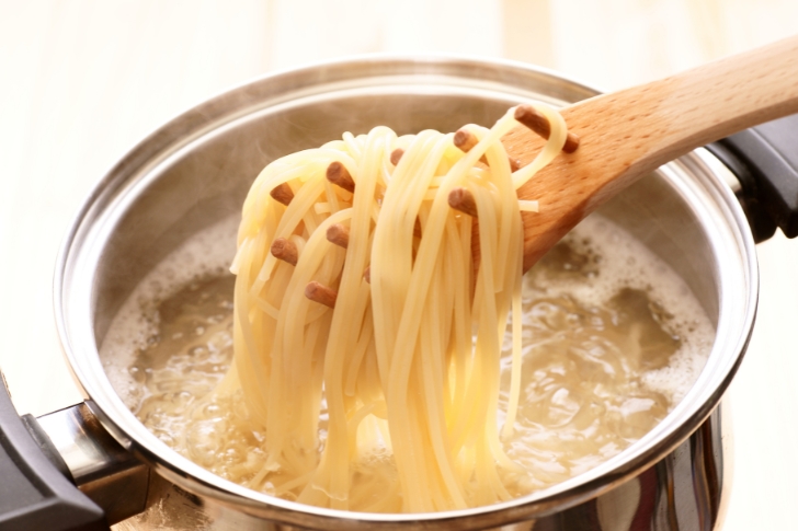 次に、スパゲッティを表示時間より1分程度短めに茹でます。茹で上がった後も少し火が通るので、早めに上げておくことでちょうど良い食感に仕上がります。茹で上がったら、ザルにあけて水気をよく切り、ソースと絡める準備をしましょう。