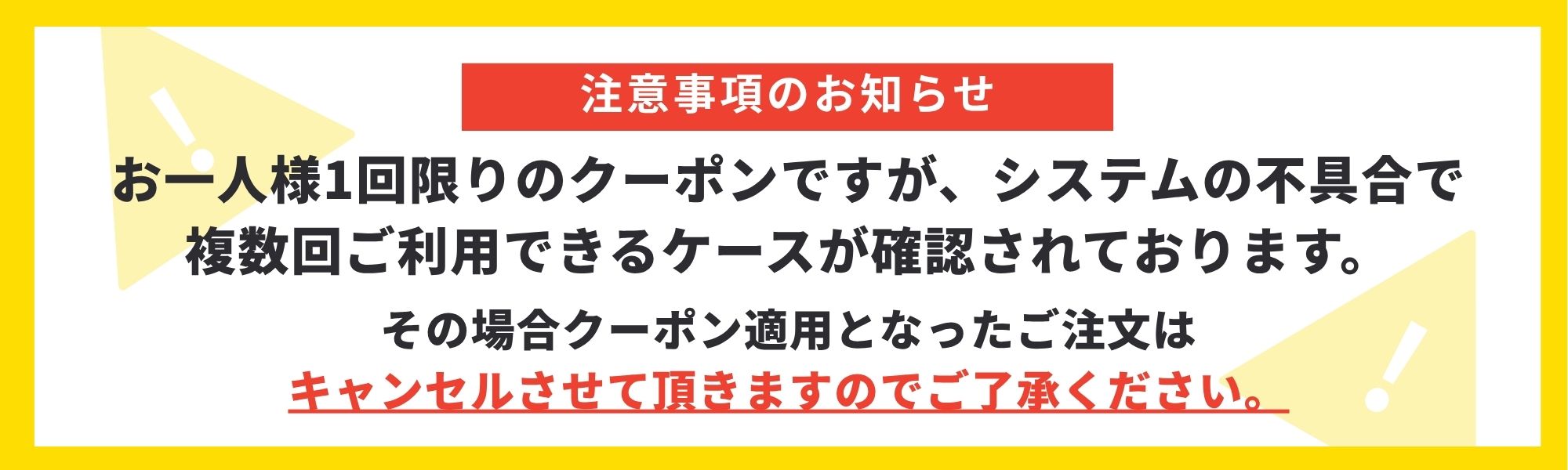 お一人様1回限りのクーポンですが、システムの不具合で複数回ご利用できるケースが確認されております。