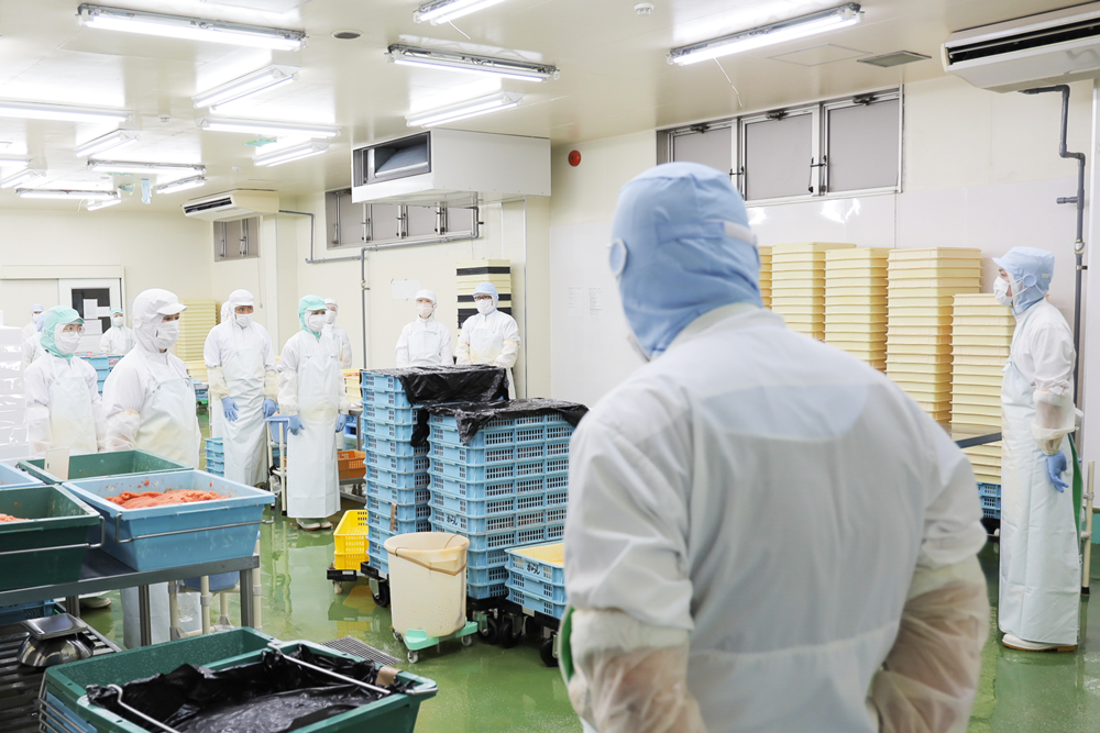 さかえフーズ社員の1日をご紹介します さかえフーズの社員がどんな日常を送っているのか密着しました。入社してからの日々をイメージしてみてください。 8:00 出社・着替え 9:00 原料準備・朝礼参加 10:00 原料洗卵・原料漬込み 12:00 お昼休憩 13:30 原料解凍・原料辛子漬込み 15:00 原料液切り・製品包装 16:00 備品洗浄 17:00 製品包装 アルバイトの1日 募集情報はこちら 募集内容を見る 正社員採用 › 募集内容を見る アルバイト採用 › 求人TOPへ戻る