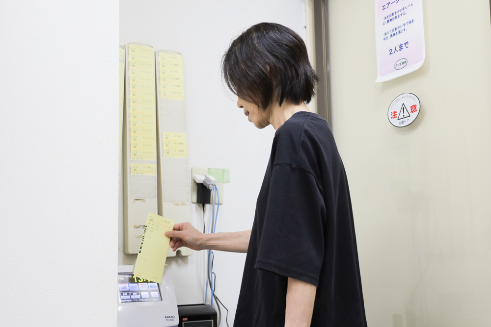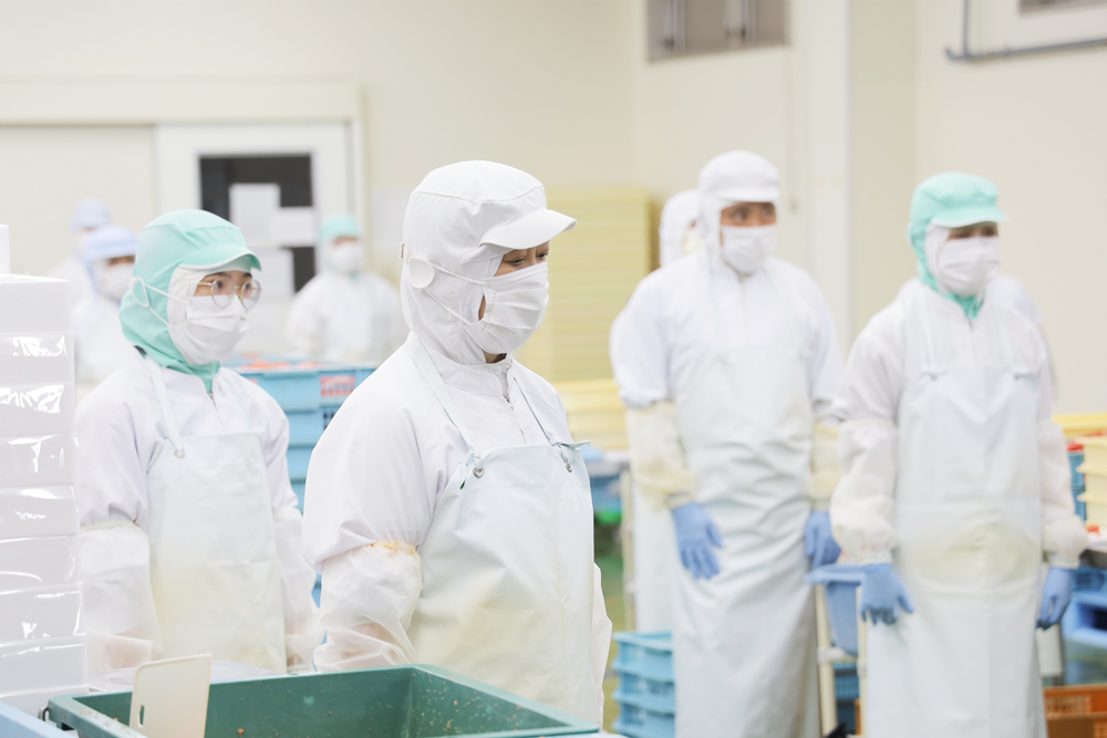 さかえフーズパートの1日をご紹介します さかえフーズのパートがどんな日常を送っているのか密着しました。入社してからの日々をイメージしてみてください。 8:25 出社 8:30 着替え 8:35 エアシャワー通過 8:40 作業開始 9:00 朝礼 9:10 作業開始 12:30 昼休憩 13:30 作業開始 16:50 掃除・着替え 17:00 退勤 社員の1日 募集情報はこちら 募集内容を見る 正社員採用 › 募集内容を見る アルバイト採用 › < 求人TOPへ戻る